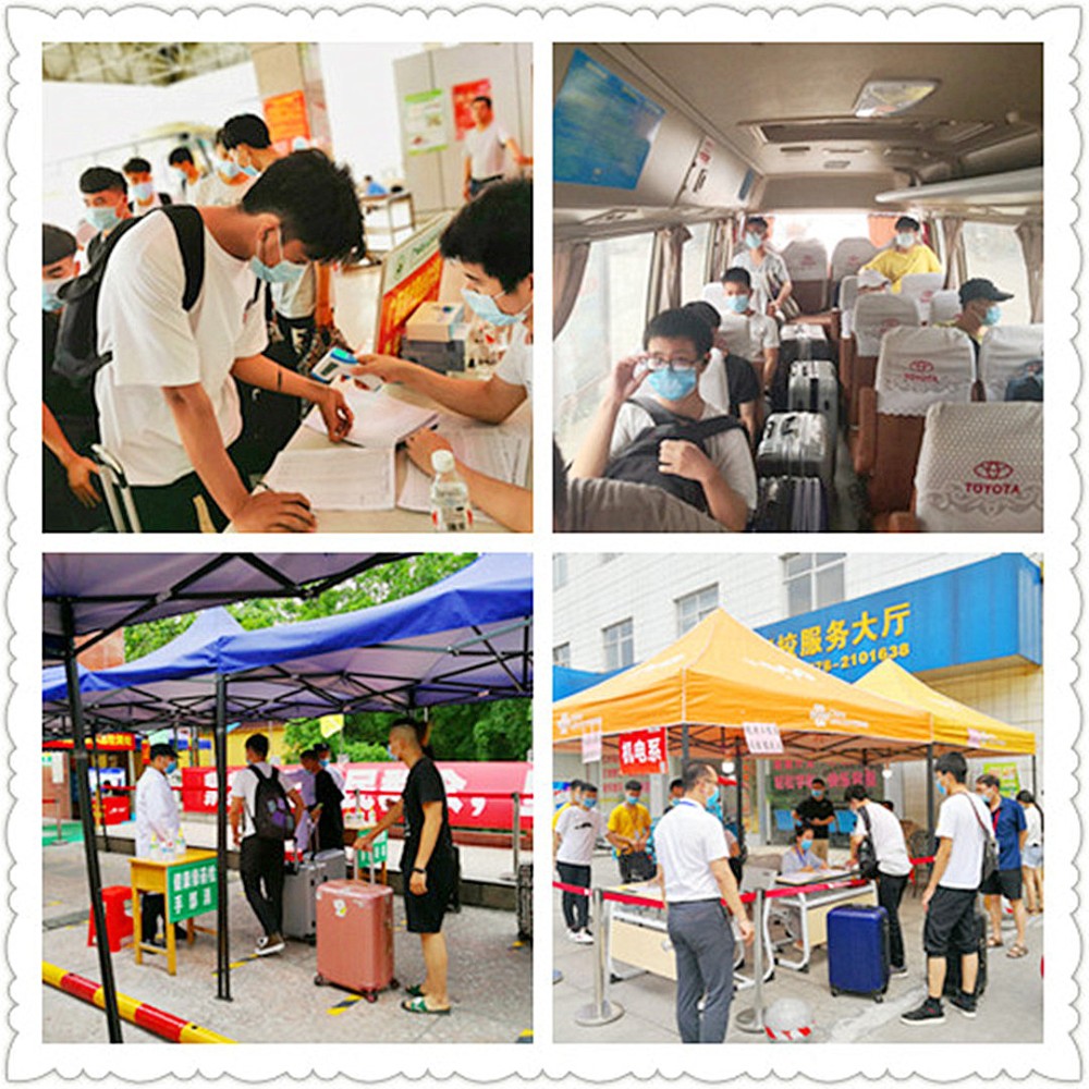 据悉,为精准到位、细致排查每个环节,确保每一位学生顺利平安返校,机电工程系分别在火车站、城北站、城西站等站点设置接待点,接待员引导每一位到站学生进行体温检测登记、身份核验后方可乘坐学校专车返校。