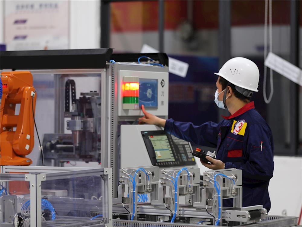 据悉,《制造单元智能化改造与集成技术》赛项是以汽车行业轮毂的生产制造为背景,采用智能制造技术完成制造单元系统的改造与集成,充分体现“两化深度融合”在传统制造业升级改造中的技术应用。竞赛过程中,选手需要根据任务书要求,自行设计实施方案,在三维软件中搭建竞赛平台并完成产品生产流程仿真,完成真实竞赛平台的系统搭建和线路连接,对工业机器人进行点位示教和控制程序编制,对数控系统进行加工程序编制和通讯参数设置,对视觉系统进行检测识别参数设定和优化,对可编程控制器进行控制程序编制及调试,从而实现轮毂产品根据不同的生产工艺要求及订单需求,完成仓库存储、数控加工、打磨加工、检测识别、分拣入位等工艺流程,通过制造执行系统对生产过程信息和设备状态实时采集和可视化显示,智能终端利用云端实现安全的制造数据远程监控。