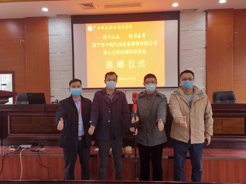 南宁中联汽保公司是广西领先的汽保设备及汽车教学设备的配套服务商。近年来,南宁中联汽保公司与我院在实训基地文化建设等方面合作成果丰硕。得知我校正为新学期复课开学工作努力准备,南宁中联汽保公司急我院之所急,主动向我院捐赠疫情防控物资,既体现了企业的社会责任和担当,也践行了校企合作相互支持的承诺。