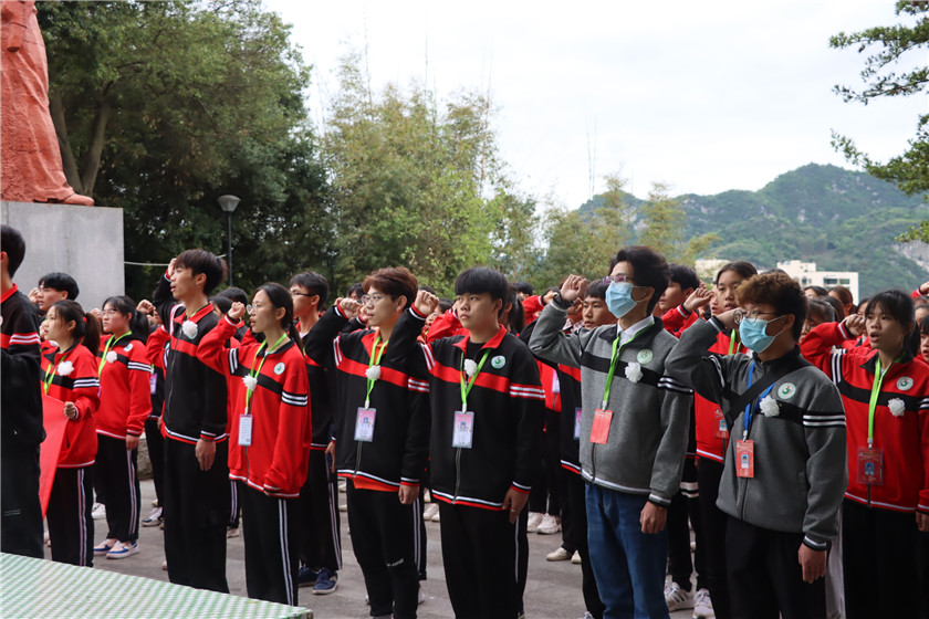 “清明时节雨纷纷,路上行人欲断魂。”在庄严的国歌中,在烈士纪念碑下,参加活动的老师与同学全体肃穆,向先烈们默哀1分钟。全体党员面向党旗重温入党誓词及全体团员重温了入团誓词,之后,在老师的有序组织下,同学们依次向英烈墙敬献小白花。他们双手奉上,炯炯有神地注视着英烈墙上那些为新中国做出巨大奉献的革命烈士,和抛头颅洒热血的英烈名字。在瞻仰烈士纪念碑时,同学们的眼神中透露出坚定,展现了同学们身上不辱历史使命、勇当时代弄潮儿的精神风貌。