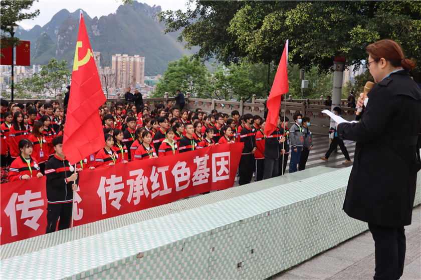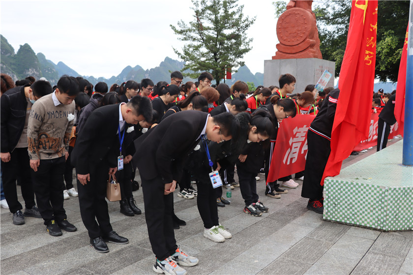 为缅怀革命先烈,弘扬革命精神,4月8日下午,教育系党员教师、入党积极分子、学生会干部及各团支部代表等在我系覃琳琳书记的带领下,怀着对先烈的敬仰和缅怀,来到金城江烈士公园开展“清明祭英烈”主题教育实践活动。