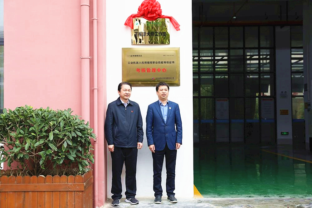 在专题讲座前,在学院机电综合实训大楼1楼,举行了王振华大师工作室和工业机器人应用编程职业等级证书考核管理中心揭牌仪式。院长黄绍光、王振华教授、机电工程系主任岑华等出席揭牌仪式,机电工程系师生代表参加揭牌仪式。王振华教授对学院近年来在智能制造专业群建设、工业机器人应用编程1+X证书试点工作取得的成绩给予了充分的肯定,并表示会一如既往的支持学院的智能制造专业群建设。