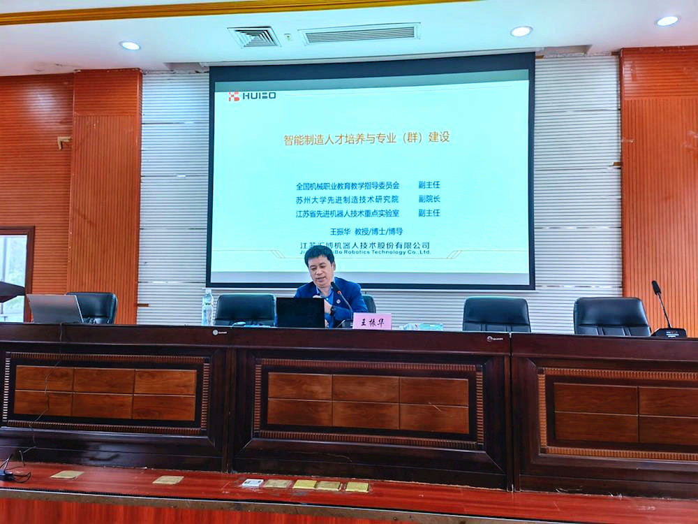 为全面落实机电工程系产教融合的工作部署,推进智能制造专业群建设,深化智能专业人才培养改进方向, 4月20日下午,全国机械职业教育教学指导委员会副主任、苏州大学先进制造技术研究院副院长、江苏省先进机器人技术重点实验室副主任王振华教授为机电工程系师生代表《智能制造专业群建设与人才培养》的专题讲座。