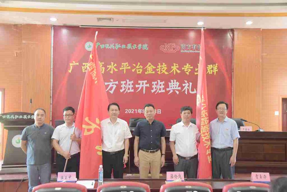 为进一步落实创新型工程人才培养,9月28日下午,我院与南方有色集团共同举办的广西高水平冶金技术专业群冶金技术专业南方班和分析检验技术南方班(以下简称“南方班”)在学院顺利开班。学院院长、河池市职业教育中心学校校长黄绍光,南方有色集团董事长周南方等领导出席开班典礼。学院有关部门领导、资源系教师代表参加开班典礼。开班典礼由学院副院长卢森焕主持。