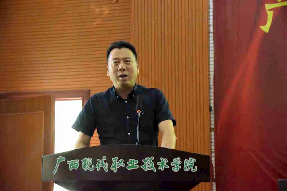 学院院长、河池市职业教育中心学校校长黄绍光在典礼上做讲话。黄绍光表示,学院与南方有色集团多年来持续开展校企合作,取得了显著成效。举办“南方班”,标志着双方校企合作进入了一个新阶段,双方将进一步完善育人机制、创新技术技能人才培养模式、提升人才培养质量。黄绍光希望同学们能珍惜机会,通过学习,从理论和实践的结合上提升自己;要严格遵守学院和企业的各项规章制度,刻苦学习,掌握专业技能。
