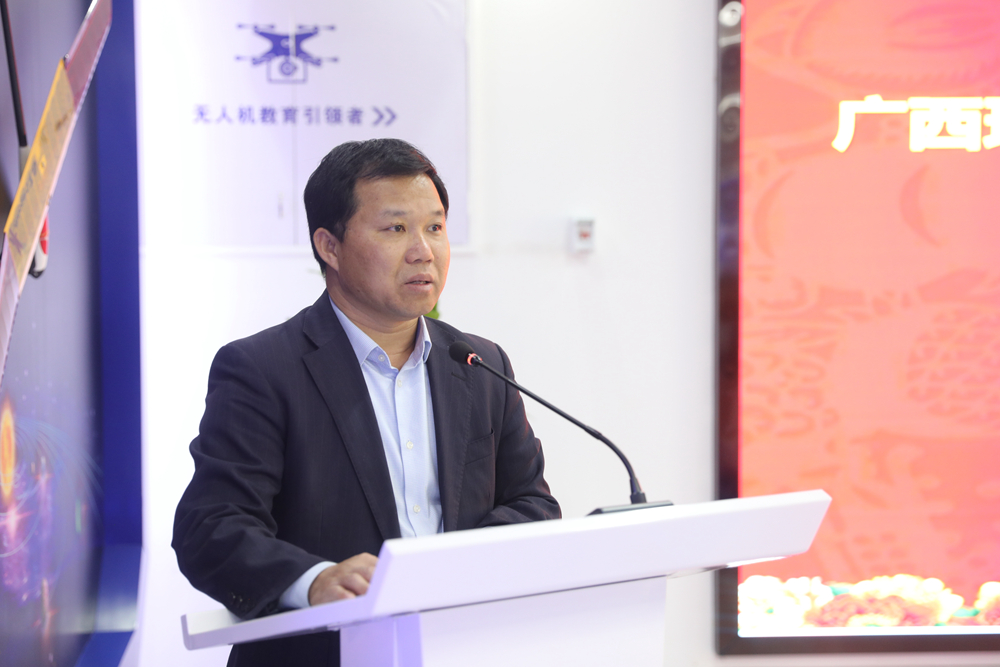 仪式上,莫绍乾局长发表讲话,他指出,本着“优势互补、资源共享、协同育人、互惠多赢、共同发展”的原则,为充分发挥政府职能部门与学校之间“育才用才”的互补模式,进一步加强政府部门与学校的合作,培养更多高素质、高技能的应用型人才,河池市自然资源局欢迎无人机应用技术专业的师生们到自然资源系统开展教师教学、学生实习、实训、就业,从而促进政府职能部门和学校双方人才供给方面的共同发展,也希望各位师生能够通过这个平台,实现自然资源部门和学校“学以致用、用以促学、学用相长”的最终目标。