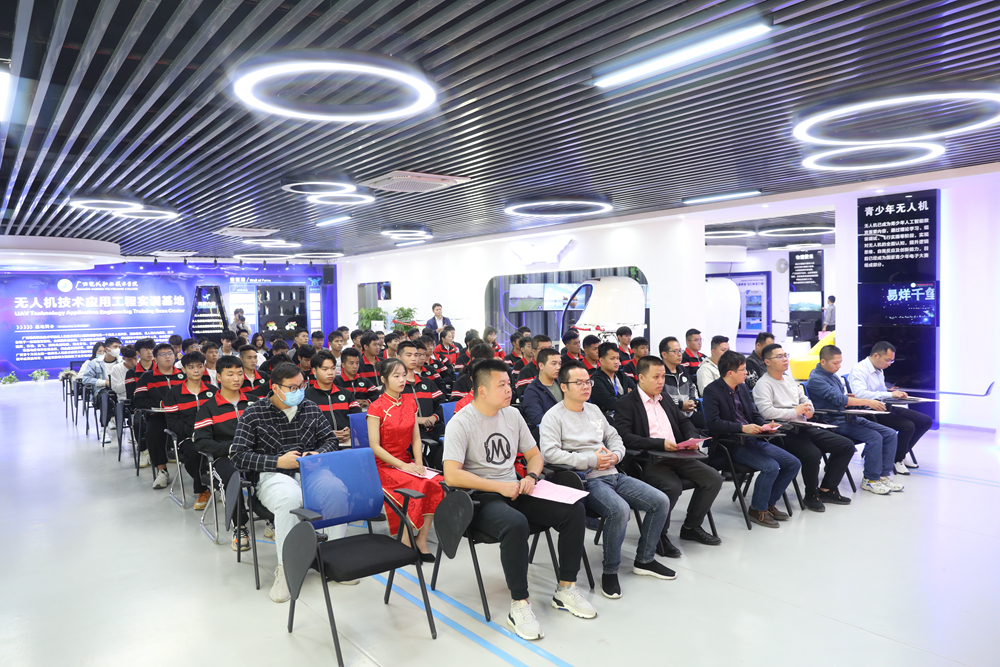 黄绍光院长在仪式上发表讲话,他表示,这是我院第一次与政府部门签订人才培养合作协议,标志着我院在“政校”合作方面迈进了新的台阶,也意味着我院的职业教育成果得到了市委、市政府等部门的充分认可。河池市自然资源局有丰富的资源可以提供给我们无人机应用技术专业师生开展实践教学、学生实习就业、教师能力锻炼等合作平台,同时也有一批理论知识扎实、实践技能高超的工程师可为我院的教学提供帮助;双方的合作不仅有利于吸引更多的优秀毕业生服务于地方企业,同时也为我院学生提供了就业实习平台,这是一件学生、学校、政府部门多赢的大好事。本次“政校”合作签约仪式,可以说是为河池地方经济的发展搭建了人才培养“直通车”,不仅可以将岗位要求与教学实践紧密结合,还能让学生们提前了解企业、熟悉企业,对于培养一批高匹配度、高技术技能型人才队伍具有极其重要的意义。他提出三点希望:一,希望河池市自然资源局大力支持,多派当地无人机应用领域的能工巧匠到学校传授高超的技艺。二,希望通过政校合作的平台优势,多提供“工学结合”的岗位锻炼,使我们的在校学生都能实现“现代学徒制”的教育模式。三,希望所有订单班的学生积极利用学院为你们打造的这个平台,努力学习,不断提升自己,在今后的工作岗位上,发挥自己的聪明才智,为服务于河池地方经济做出更大的贡献!