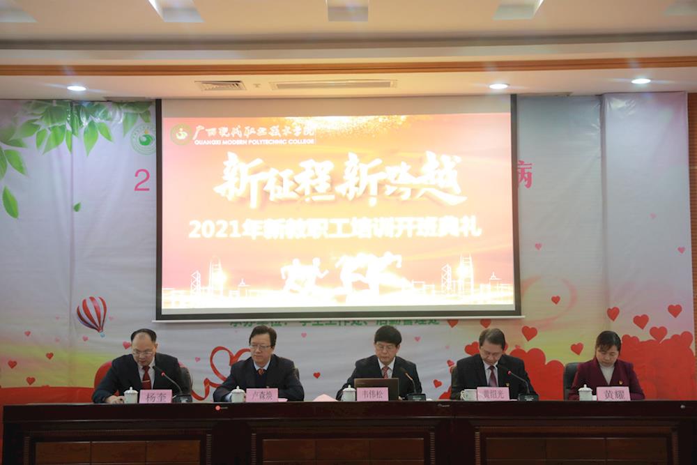 开班仪式过后,由韦伟松书记,黄绍光院长,科研处处长何启贤,学生工作处处长李铃,教务处副处长匡华为新教师开展为期两天的培训。