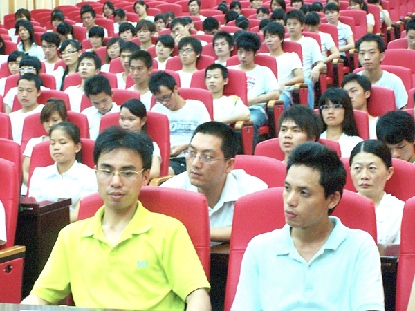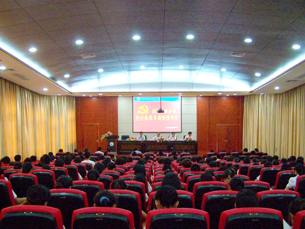 院党委宣传部讯(莫春燕)2011年7月6日下午,我院举行2011年第一批新党员大会,198名党员面对鲜红的党旗进行庄严宣誓。学院党委书记邓福田出席大会,学院党委副书记、纪委书记覃志航讲话。学院党委委员、副院长潘尚河宣读《关于批准李和明等198名同志为中共预备党员通知》文件。大会由学院党委组织部副部长罗之尚主持。