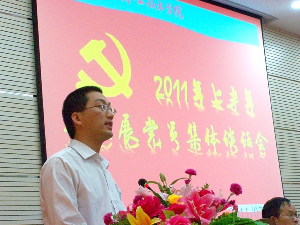 学院党委副书记、纪委书记覃志航代表学院党委对刚刚被批准为中共预备党员198名同志表示热烈的祝贺。他对新入党的同志提出五点要求:第一,要坚定共产党员的理想信念不动摇,矢志不移地坚持共产主义理想,做一名在学习或工作中充分发挥先锋模范作用的合格共产党员。第二,要勤奋学习,提高为人民服务的本领,争当学习的先锋和楷模。第三,要牢记党的根本宗旨,做全心全意为人民服务的模范。第四,要严于律己,遵守党纪国法,遵守校纪校规,遵守社会公德,要按时参加党的活动,完成党组织交给的任务。第五,不管在什么岗位,都要立足本职,勤奋工作,带头参加改革和业务创新,争创一流业绩。