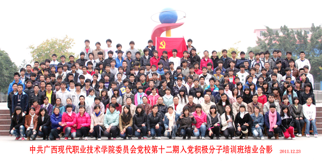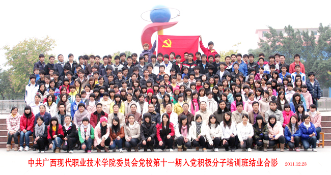 院党委组织部讯 2011年12月23日,学院党校第十一、十二期入党积极分子培训班顺利结业,学院党委书记、党校校长邓福田,党委副书记、纪委书记覃志航,党委委员、副院长潘尚河、党委组织部部长罗之尚、学院各党总支部书记参加结业合影。