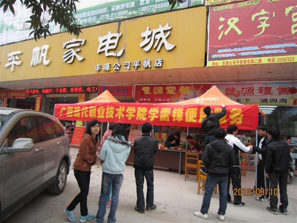 本站团委讯(林基华 李媛媛)雷锋精神永传承,志愿服务若春风。在纪念第四十九个“雷锋日”之际,为传承和发扬雷锋精神,我院“电子协会”提前筹备,踊跃参与,于3月10日在金城江区南桥市场开展了主题为“义务维修学雷锋,电子学子显身手”的学雷锋活动。
