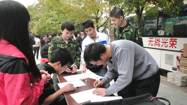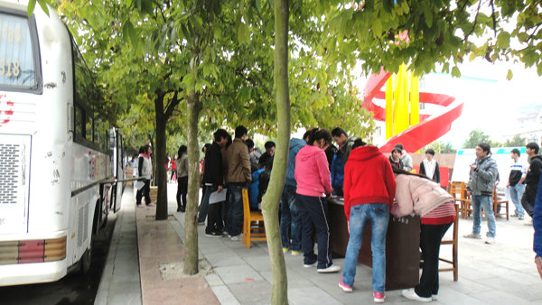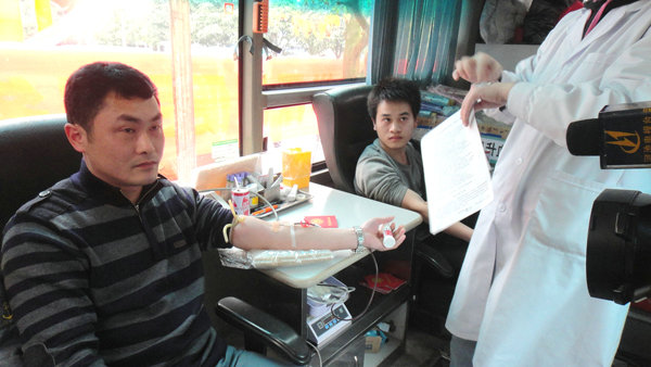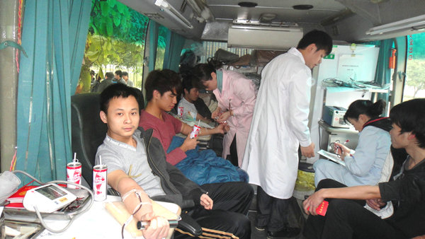 下午15:00,血站的流动采血车到达我院现代广场,工作人员忙碌地准备着,院学工处领导也来到现场参与此次活动。15:30,院学工处霍江华处长带头第一个走上采血车献血,同学们也纷纷走上采血车,用行动践行着雷锋精神。在献血现场,院团委、学生会的学生干部们主动、积极协助河池市中心血站工作人员进行一系列的工作,为前来献血的同学们进行登记、体检,他们还不时地向血站工作人员询问关于献血的有关规则和常识,和同学们聊天、交流,缓解同学们等候献血的紧张的心理,使同学们以更好的心理状态参与到献血活动中来。截止下午6:00,我院共有师生一百多人踊跃参与此次献血活动,献血量近3万毫升。