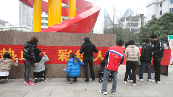 “捐献青春热血,彩绘人生画卷”,我们相信:只要人人都献出一点爱,世界将变成美好的人间。
