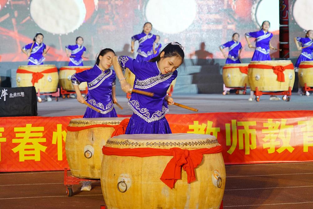本次汇演节目共有17个节目,485名师生同台展示。汇演在我校民族文化特色节目《古兰皮鼓》中拉开序幕,由师生们展示的经典诵读、幼儿舞蹈、弹奏、地方民族舞蹈、红歌传唱、教师独舞等,体现了教师教育学院德育和美育相融合的特色,也是教师教育学院加快课程建设、创新教学评价改革、提升教学质量的成果展示。