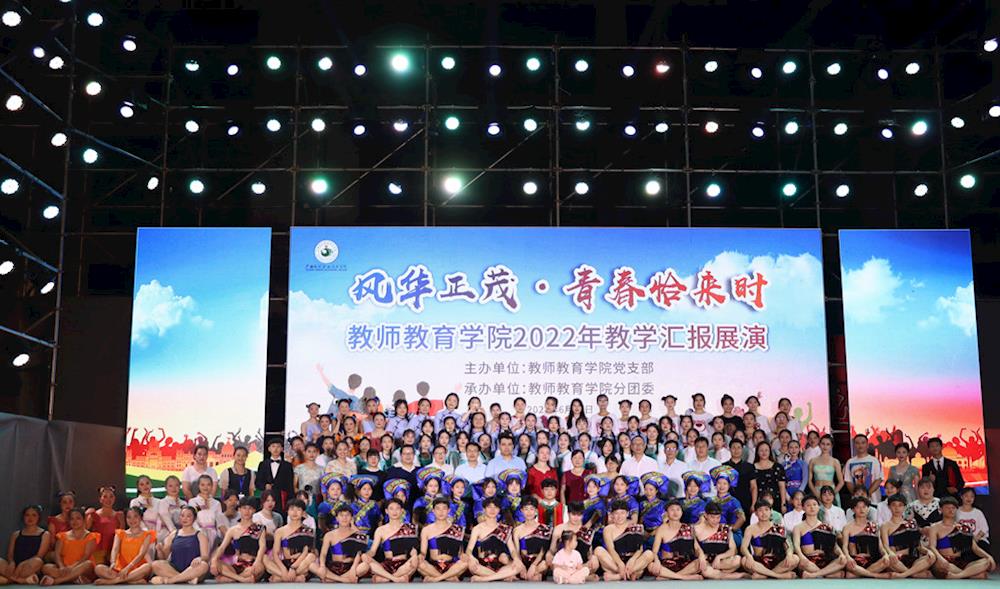 6月29日晚,由教师教育学院党支部主办的“风华正茂,青春恰来时”2022年教学汇报展演在学校田径场举行。副校长黄耀、校长助理覃孜,以及各优米网官方App师生等到场观看。