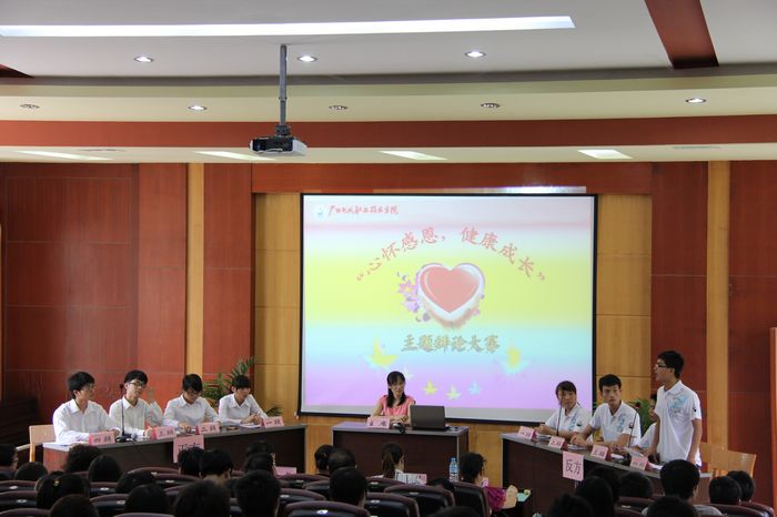 社科部讯(游桂荣 莫春燕) 2012年6月6日下午,我院在第一报告厅举行了一场别开生面的“心怀感恩,健康成长”主题辩论赛。