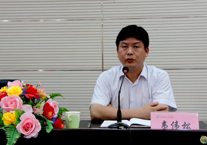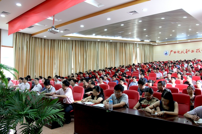 院党委宣传部讯(曾 严 莫春燕)目前,学院在“解放思想、凝心聚力、增量提质、赶超跨越”大讨论活动和“五大工程”建设中,已有实质性的进展。为进一步加强推进工作,学院于2012年6月12日下午召开学院全体教职工会议,围绕“制约学院发展的思想观念、突出问题、瓶颈问题和机制问题”作进一步学习讨论。学院党委书记韦伟松、党委副书记、纪委书记覃志航、副院长冯忠伟及全体教职工参加了大会。会议由副院长冯忠伟主持。