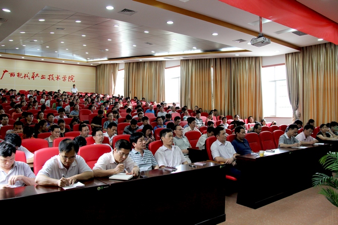 大会上,党委副书记、纪委书记覃志航首先做中心发言。学院教务科研处处长韦胜东、学生工作处处长霍江华、文艺体育部副教授陆峰、管理工程系教师覃素香从教学、学生管理、内涵建设等不同角度阐述了自己的思考和认识。