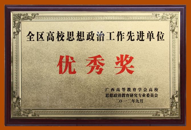 社科部讯(韦朝忠) 近日,我院被广西高等教育学会高校思想政治教育研究专业委员会评为“全区高校思想政治工作先进单位”优秀奖。