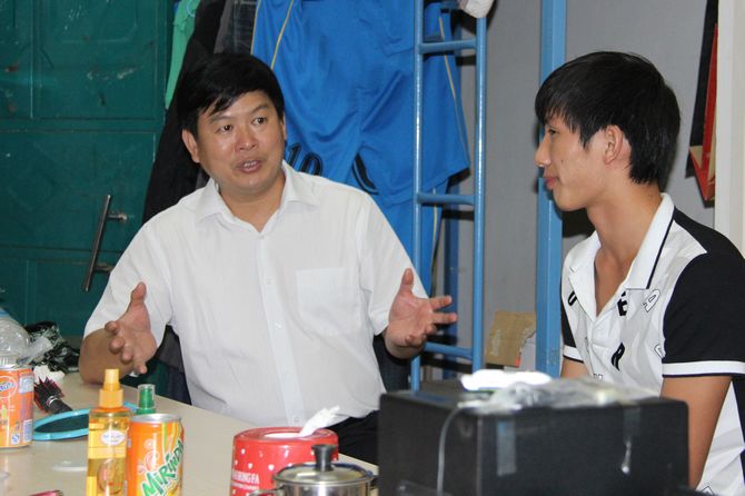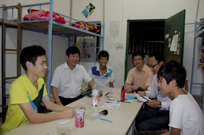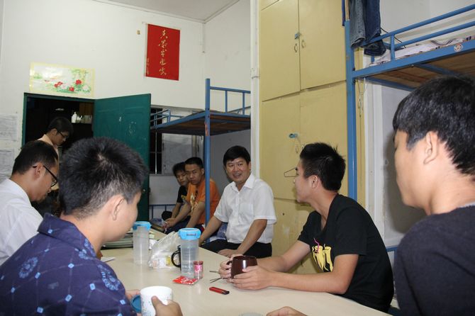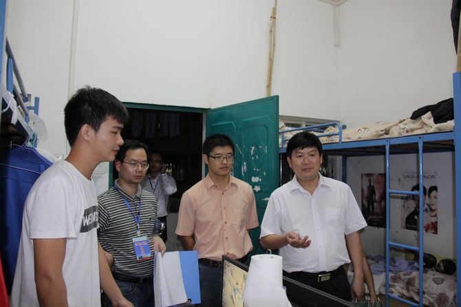 学院党委宣传部讯(曾严)为进一步增强班级管理效能,加强和改进大学生的思想政治教育工作,努力为大学成长成才服务,我院实施了第二轮中层以上干部与学生班级结对子活动。学院领导身体力行,积极参与活动。2012年10月28日晚10:30,学院党委书记韦伟松在学工处副处长岑华、团委负责人黄仕珍的陪同下走访了结对子班级和“2+3”“3+2”大专学生宿舍,深切关心和慰问学生的生活、学习情况,并对学生宿舍的安全、卫生状况作了全面检查。