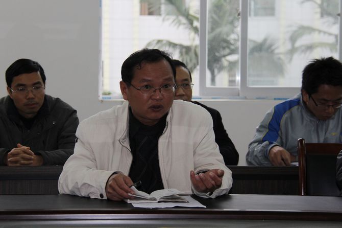 学院党委宣传部讯(曾严 ) 为学习贯彻党的十八大精神,继续深入开展解放思想大讨论活动,扎实推动学院跨越发展,按照学院党委要求,2012年12月13日下午,各单位、部门组织召开了“学院精神、教风学风”表述语讨论会,学院党委书记韦伟松参加管理外语系、机电工程系的讨论会并作总结发言。