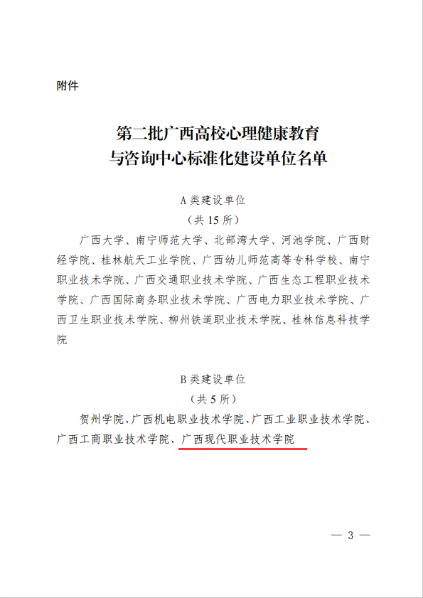 广西现代职院入选第二批全区高校学生心理健康教育与咨询中心标准化(B类)建设单位