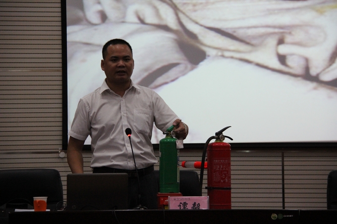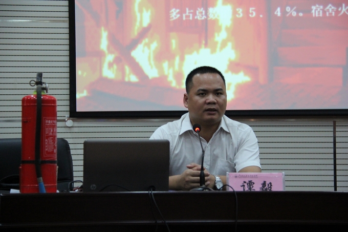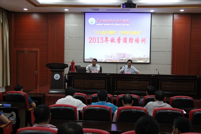 学院党委宣传部讯 为进一步加强校园的防火安全意识,提高师生逃生自救的能力。2013年9月24日下午,我院在第二学术报告厅举办了2013年秋季消防培训。南宁市六进消防咨询服务培训部谭毅主任应邀到我院作专题知识讲座,学院党委副书记、纪委书记覃志航主持讲座,学院全体教职工参加培训。