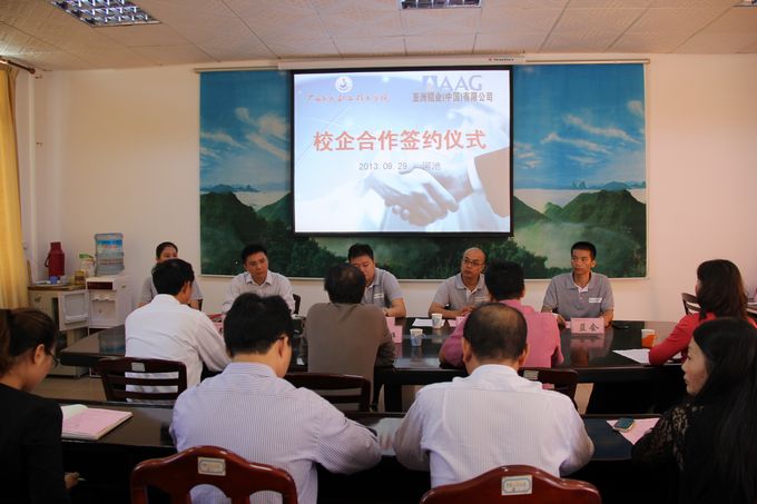 学院党委宣传部讯 2013年9月29日上午,我院与亚洲铝业(中国)有限公司在第一行政楼五楼会议室签订了校企合作协议。仪式由冯忠伟副院长主持。