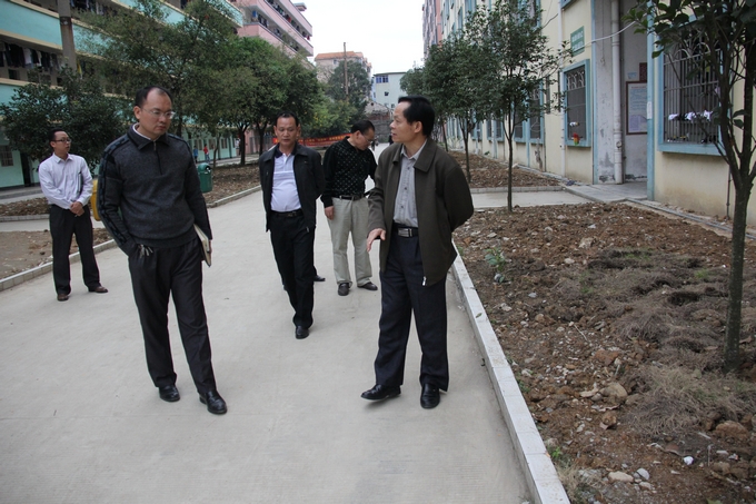 学院党委宣传部讯 2013年10月21日,学院党委副书记、纪委书记覃志航率院办、教科处、后勤处、宣传部、学工处、纪检办、图书馆以及各系部相关负责人检查我院新一轮“美丽河池·清洁校园”活动开展情况。