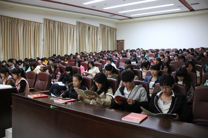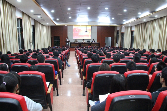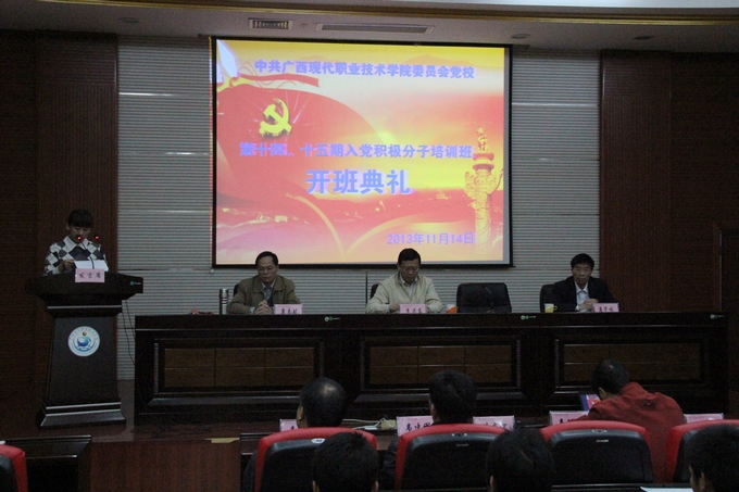 学院党委组织部讯(潘华林) 2013年11月14日晚,我院党委党校第十四、十五期入党积极分子培训班开班典礼在学院第一、二学术报告厅隆重举行。开班典礼由学院党委副书记、纪委书记覃志航主持。学院党委组织部主要负责人、各党总支书记及入党积极分子490多人参加开班典礼。