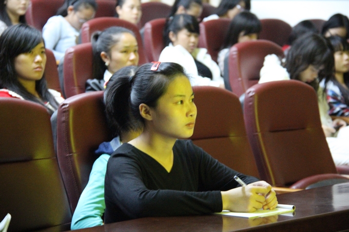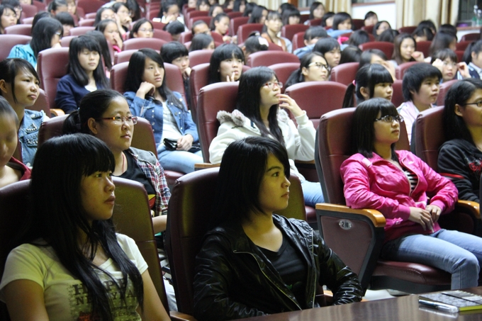 讲座中,刘医师利用课件的形式,向在座的女大学生讲解了地中海贫血的防治、青春期健康保健等方面的知识。刘医师用通俗易懂的语言为大学生们揭开了青春问题的神秘面纱,一次次将讲座推上高潮。同学们认真地做着笔记,并时不时向刘医师提出生活中的困惑与问题,现场气氛非常活跃,女生们受益匪浅。