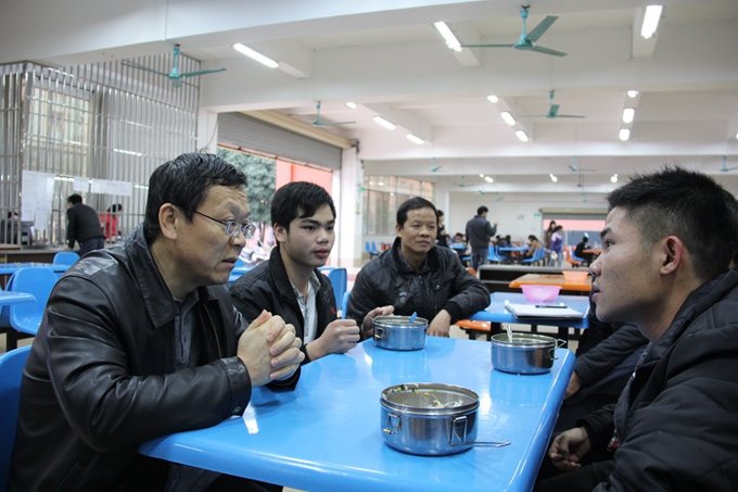 当天下午,正值学生用餐的高峰期,学院领导在售卖窗口和餐桌前亲切与就餐学生交谈,询问了学生对食堂菜肴质量、价格以及服务态度等方面的看法,认真听取、记录了就餐学生对学校食堂工作的建议和意见。学院领导对学生食堂近期工作的总体情况表示满意,要求后勤处等相关部门一定要高度重视,要提高饭菜质量,提高服务质量,提高学生的满意度,要把食品卫生安全放在工作的首位,杜绝食品安全隐患;要高度重视学生食堂的管理工作,切实稳定饭菜价格,提高饭菜质量;要从关心学生生活、维护学校和谐稳定的大局出发,结合实际,采取有效措施,确保食堂饭菜质量价格稳定、菜品丰富以及食品卫生安全。