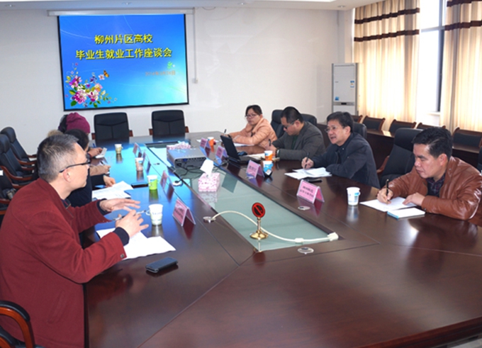 学院就业办讯 3月24日,自治区教育厅组织“柳州片区高校2014届毕业生就业工作座谈会”在广西科技大学举行。会议由区教育厅学生处慕朝京副处长(正处长级)主持。我院就业办负责人以及广西科技大学、广西科技大学鹿山学院、柳州职业技术学院、柳州铁道职业技术学院、柳州城市职业技术学院、柳州师范高等专科学校等柳州片区高校就业工作部门的相关负责人参加了座谈会。