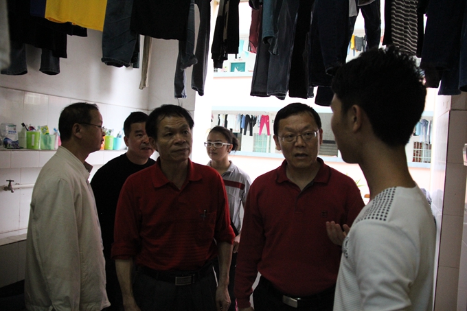 学院党委宣传部讯 4月16日下午,学院领导再次对我院“美丽河池·清洁校园”活动开展情况进行实地检查。学院纪委书记覃志航、副院长冯忠伟以及教科处、后勤处、纪检办、各系相关负责人陪同督查。经过近两小时的检查后,学院领导在学生公寓区进行现场小结。此次检查,学院开展的新一轮“美丽河池·清洁校园”活动卓有成效,对比上一次检查,效果有了明显的改观,但是,此次检查中仍发现一些老问题没有彻底解决,我们还要进一步提高认识,加大力度,责任到人,全面整改,为全校师生营造一个美丽清洁学习生活环境。
