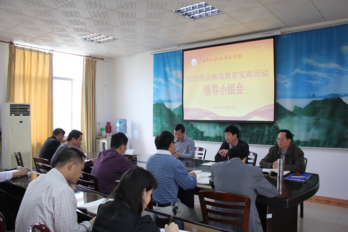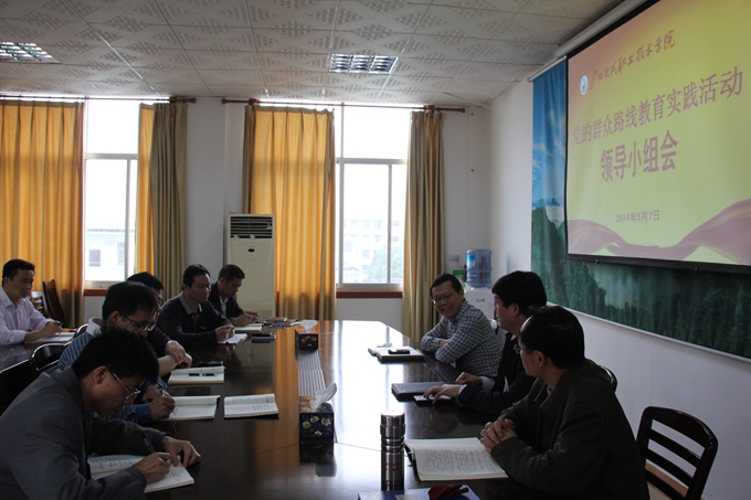 学院教育实践活动办 党委宣传部讯 5月7日上午,市委副秘书长、学院党委书记、学院群众路线教育实践活动领导小组组长韦伟松主持召开学院党的群众路线教育实践活动领导小组第四次会议。学院纪委书记覃志航,学院教育实践活动领导小组全体成员以及学院教育实践活动办公室相关同志参加了会议。