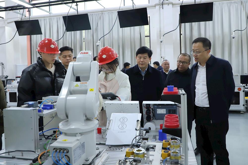 调研组一行参观了学校的5G实训室、无人机展厅、机器人实训中心和AI实训室。