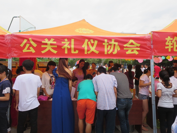 据悉,本次社团文化艺术节主要有青年志愿者协会、红星艺术团、电子协会、机械创新设计协会、市场营销协会、民族研究协会、海岩文学社、外语协会、广告协会、墨缘书画协会、武术协会、健美操协会、篮球社、轮滑协会、羽毛球协会等22个院级精品社团参加,共招收新会员1500多名。