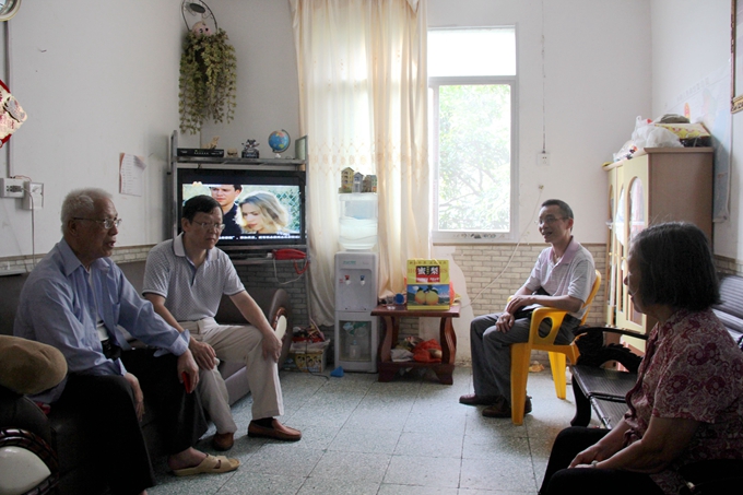 在离休干部覃雄家,韦书记向老人送上了慰问金和慰问品,并亲切地与老人及其家人攀谈,询问老人的生活起居、身体状况和家庭情况,认真听取了老人对学院工作的意见和建议。韦书记动情的对老人说,没有你们的长期奋斗和不懈努力,就没有学院今天各项事业蓬勃发展的大好局面,学院全体师生永远不会忘记你们的功绩。