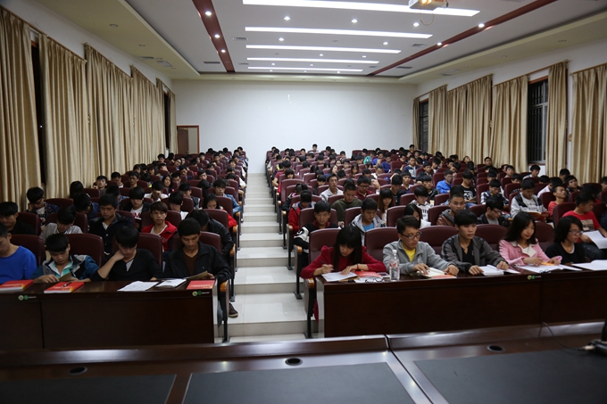 学院党委组织部讯 2014年11月27日晚,我院党委党校第十六期入党积极分子培训班开班典礼在学院第一、二学术报告厅隆重举行。河池市委副秘书长、学院党委书记韦伟松出席典礼并讲话。开班典礼由学院纪委书记覃志航主持。学院党委组织部领导、各党总支书记、副书记及入党积极分子450多人参加开班典礼。