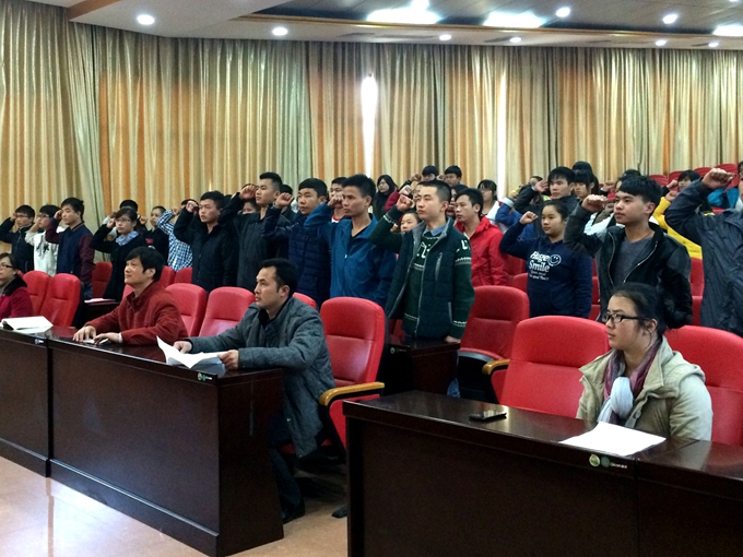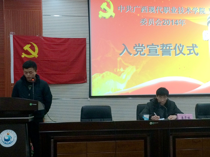 党委宣传部讯 12月29日下午,我院在第二学术报告厅召开2014年新党员入党宣誓仪式,学院纪委书记覃志航、党委组织部部长潘华林,各系党总支书记出席会议,72 名预备党员及相关老师参加此次大会。会议由潘华林主持。