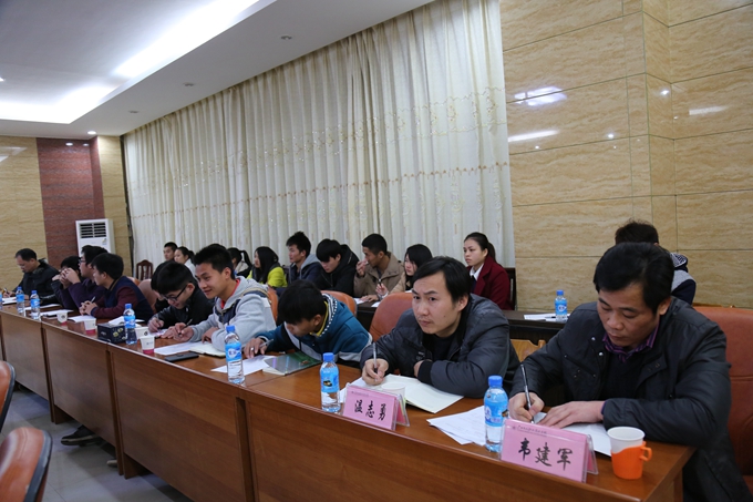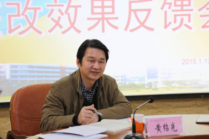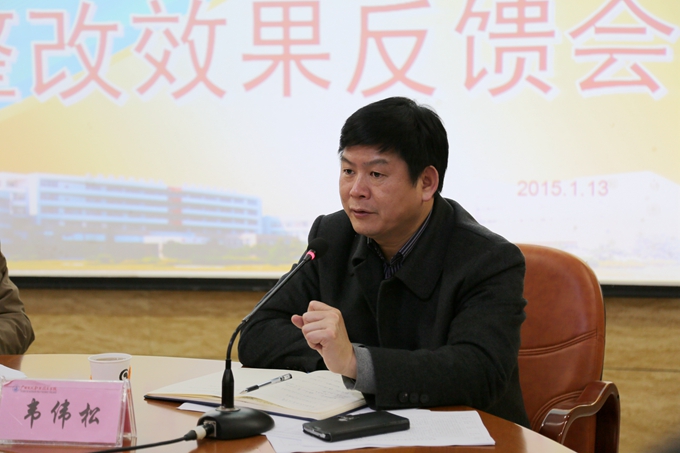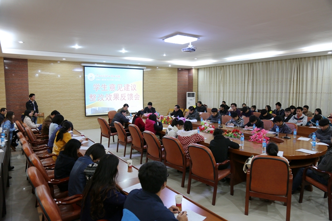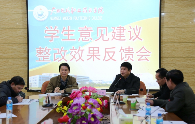 学院党委宣传部讯 1月13日晚上,市委副秘书长、学院党委书记韦伟松在图书馆会议室组织召开学生意见建议整改效果反馈会。院长黄绍光,纪委书记覃志航,副院长冯忠伟、韦胜东,相关职能部门负责人以及去年10月参加学院系列学生意见座谈会的原班人马参加了座谈会。