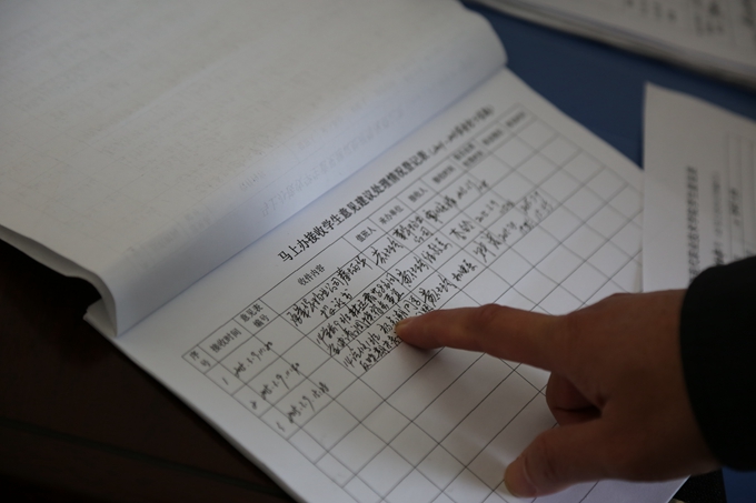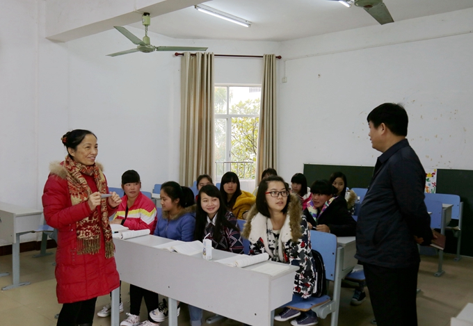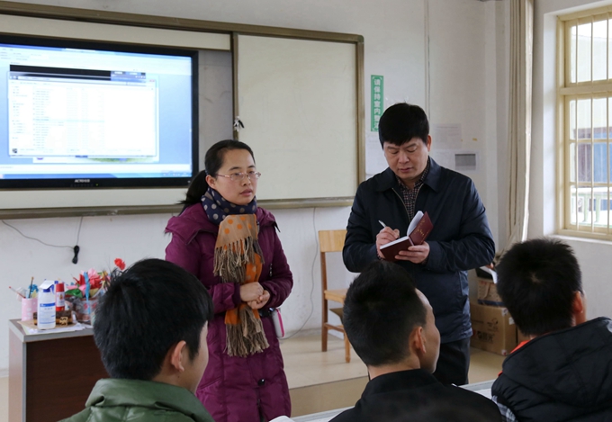 韦书记首先来到第二教学楼,对正在上课班级的课堂纪律、教师授课、卫生安全等相关情况进行一一督查,并对呈现的工作亮点和存在的问题做了详细记录。随后,韦书记临时抽查了学院“马上办”办公室工作,详细检查了“马上办”开学初以来受理学生提出的、急需马上办理的事件,并追踪相关问题的落实情况。接着,韦书记又先后检查了第二教学楼、计算机实训室等教学及实训场所,对出现的问题,立即责成随从的相关部门负责同志马上处理,并要求及时将处理结果汇总上报。