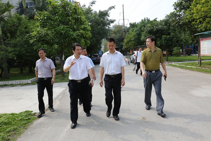 党委宣传部讯 5月26日,自治区水库移民工作管理局局长沈永明到我院参观考察,并就学院开展的水库移民创业就业培训工作进行调研。自治区水库移民局培训处处长覃革、学院院长黄绍光、河池市水库移民局党组书记韦统朝、学院副院长冯忠伟等陪同调研。