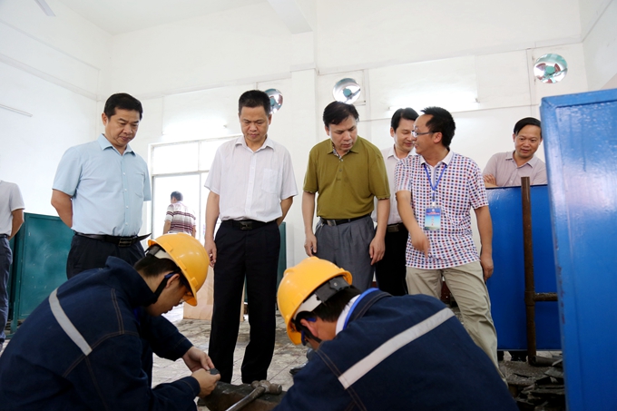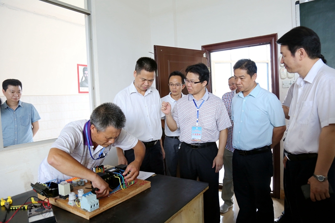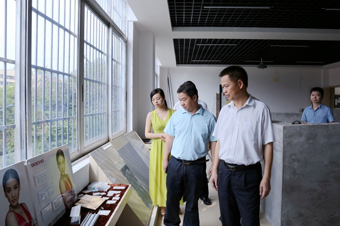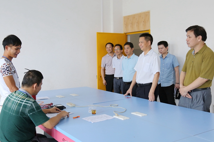 当天下午,沈永明一行参观了学院校园环境、学院水库移民培训基地、焊工实训室、数控实训室、电子电力实训室、建筑装饰实训室、建筑工程实训基地等。考察中,黄绍光还向沈永明一行简要汇报了学院的办学情况、办学特色和下一步水库移民培训工作计划等。