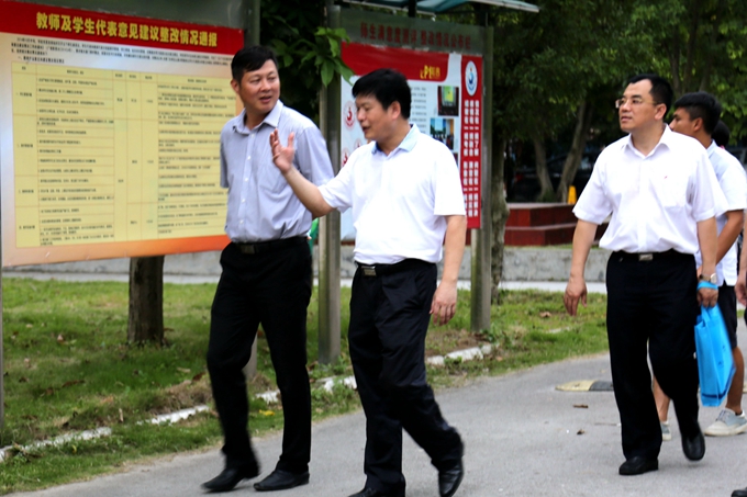 调研组组长胡泽民根据我院建设发展现状与战略规划,结合职业教育现代化的发展趋势,从重点专业建设、高职院校发展的旗帜、高等职业教育的定位与走向、国家资格认证体系构建等方面对学校发展建设作出指导。他希望,学院作为河池职教的龙头,要继续练好内功,为职业教育的建设与发展献计献策。