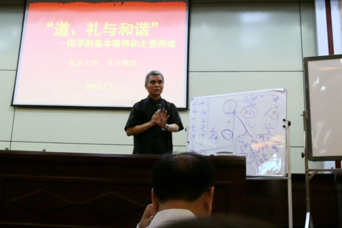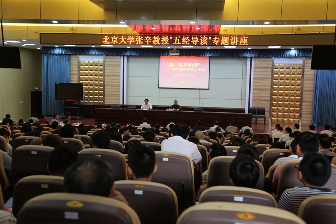 学院党委宣传部 7月7日,北京大学教授、博士生导师张辛应邀来到市职教中心厚德厅内,举行了《道、礼与和谐——国学的基本精神和主要构成》的专题讲座。市职教中心、我院全体教职工数百名听众聆听了讲座。