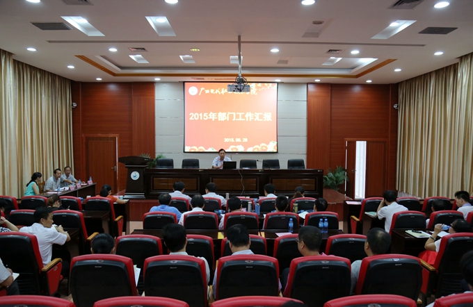 学院党委宣传部讯 8月28日下午至29日上午,我院召开2015年上半年系部(部门)工作总结暨下半年工作计划汇报评比会,12个系部及职能部门采用PPT形式对本部门上半年工作进行了总结,对下半年工作进行了展望。市委副秘书长、学院党委书记韦伟松,学院党委副书记、院长黄绍光,副院长冯忠伟、韦胜东,纪委书记冉景峰等参加会议。会上韦伟松书记、黄绍光院长、韦胜东副院长分别对各系部(部门)工作汇报进行了点评并布置新学期开学工作。会议邀请了我院及职教中心六名评委对各系部的汇报情况进行评分。