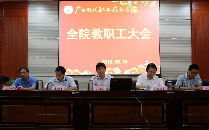 韦书记强调,2015年下半年,要加强理论和政策水平学习,提高工作能力;要巩固好、示范好、应用好、推广好、辐射好建设成果;要扎实抓好学风校风建设;要不断提升社会服务能力;要进一步加强学院对外宣传力度;要进一步加强教改和专业建设力度;要进一步加强工作计划和执行力;扎扎实实做好示范特色院校的创建工作。