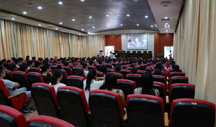 学院党委宣传部 9月3日上午10:00,我院第二学术报告厅座无虚席,来自各系近300名师生共同观看抗战胜利70周年阅兵式直播。学院党委副书记、院长黄绍光亲临收看现场与师生共同观看直播。